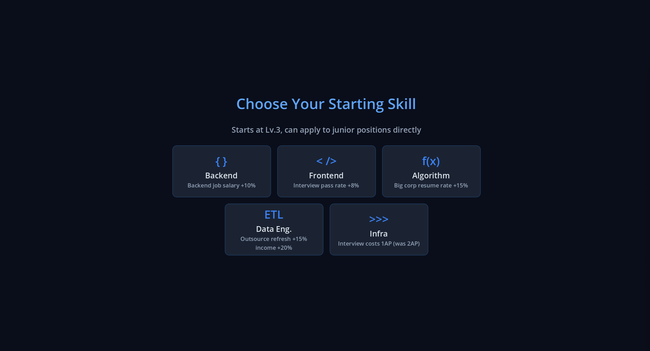 - 5 specializations + general skills — Backend, Frontend, Algorithms, Data Engineering, Infrastructure... go deep or spread wide?